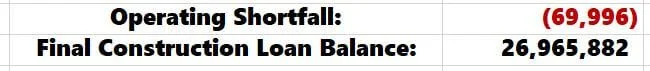 Warning: The model won't accurately tell you about your operating shortfall, as in the example below, because it will use the development fee to pay down construction interest if necessary.