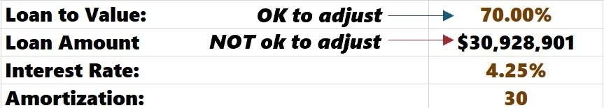 Upon completing the renovation, the model expects you to refinance, blow out the “Year 0” financing, and slap on an agency or bank loan. Your inputs in the refinance section will determine the “LTV” of the loan and the “Loan Amount” cells above, which I will touch on shortly.