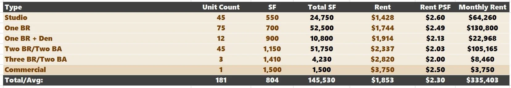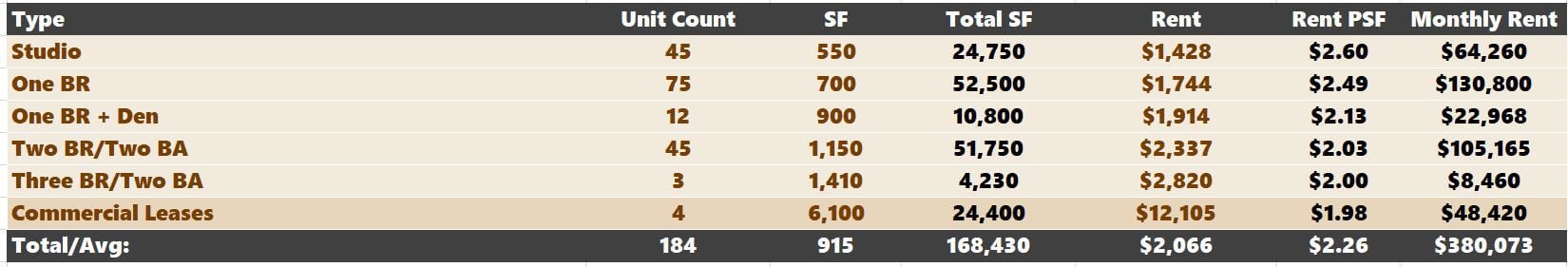 Remember to grab the "net rental amount” into the "Unit Mix" grid.