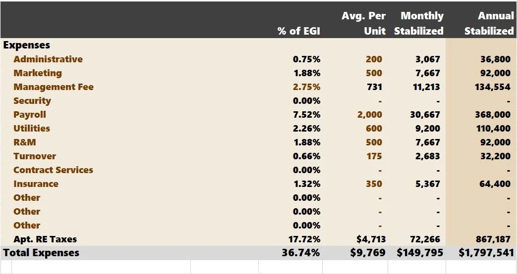 Note: It's important to remember that all operating expenses are for apartments only.